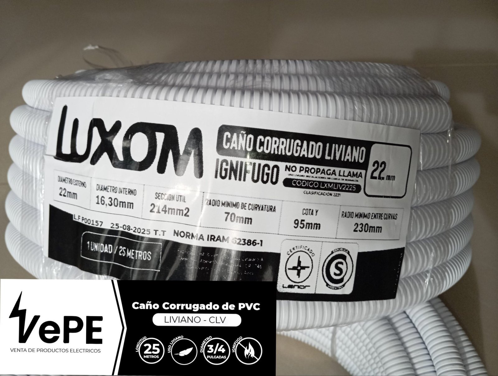 Corrugado ignífugo 7/8" (22mm) x 25 Mts cantidad